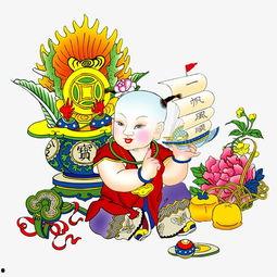 运财童子的形象通常是一个活泼可爱的小男孩,身穿红色肚兜,头戴官帽,手持如意,脚踩元宝。他的形象既可爱又吉祥,让人看了忍不住会心一笑。而且,不同地区的运财童子形象也有所不同,有的地方还会在画像上加上一些寓意吉祥的元素,如金鱼、莲花等。